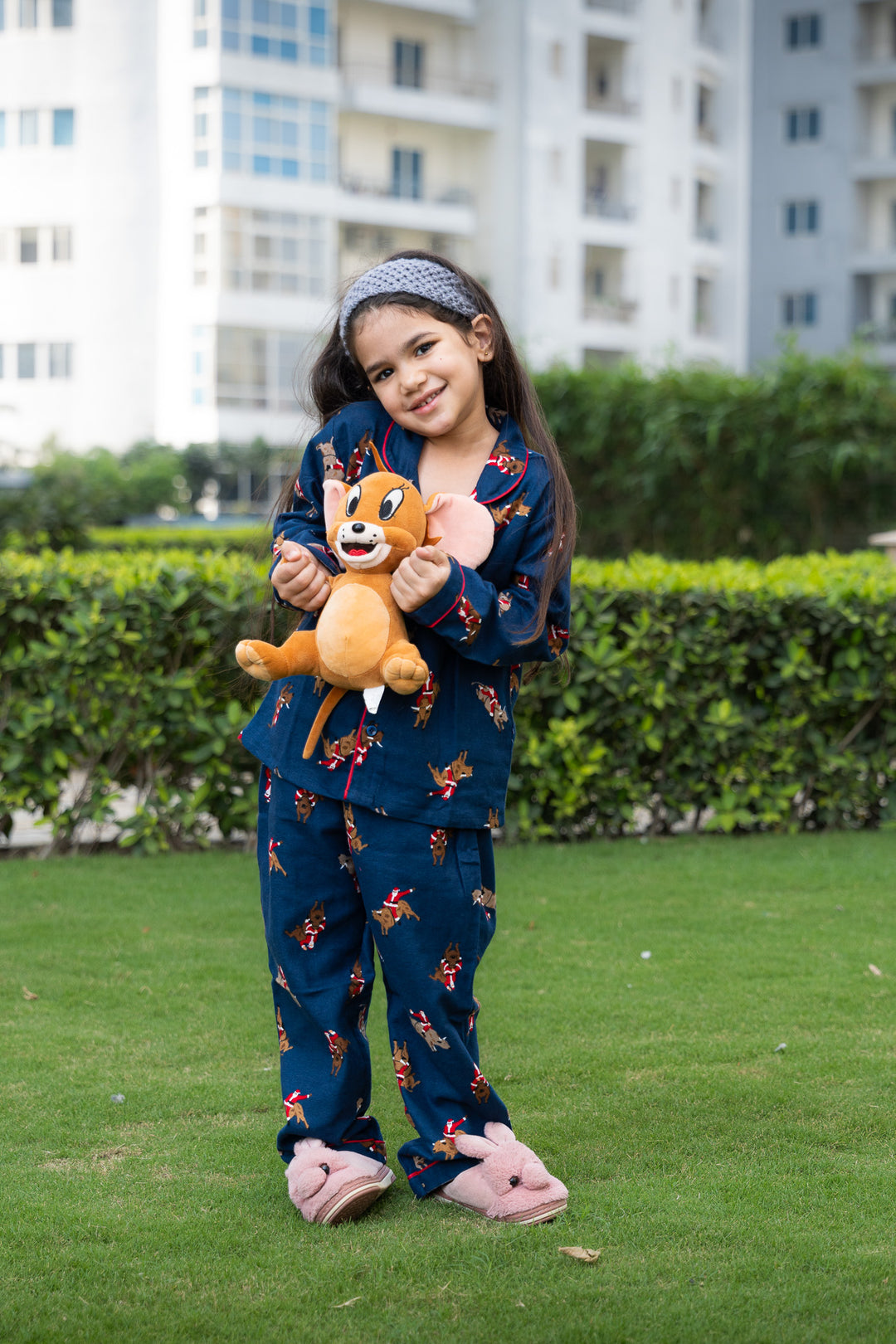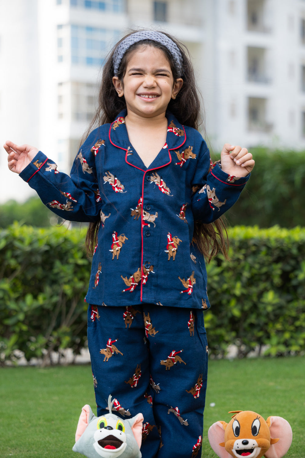 Festive Pup Flannel Night Suit – Navy Blue