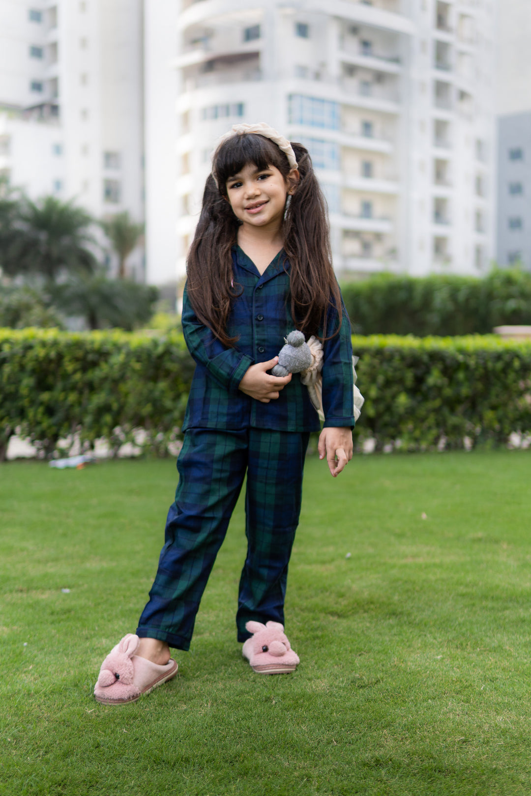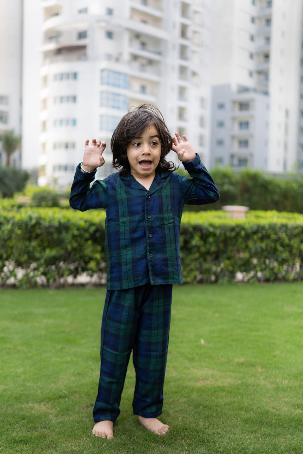 Black Winter Checks Kids Pajama Set
